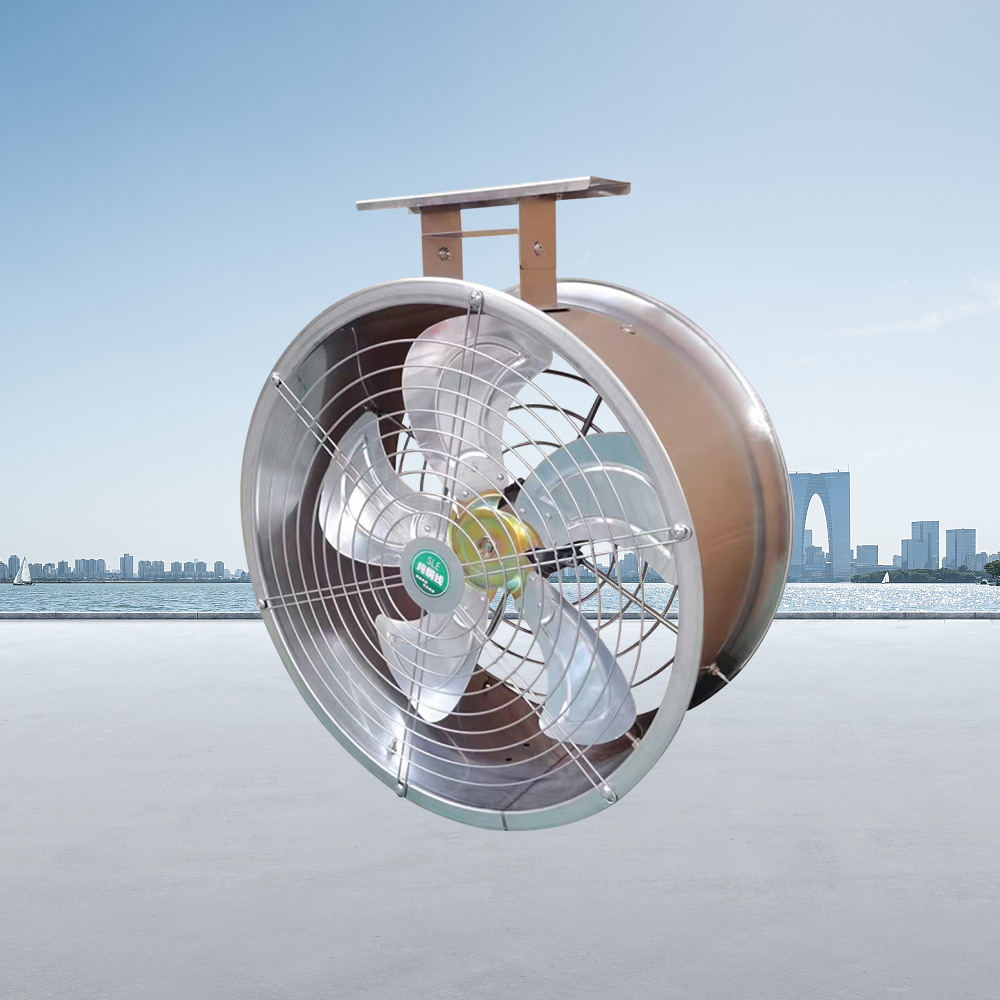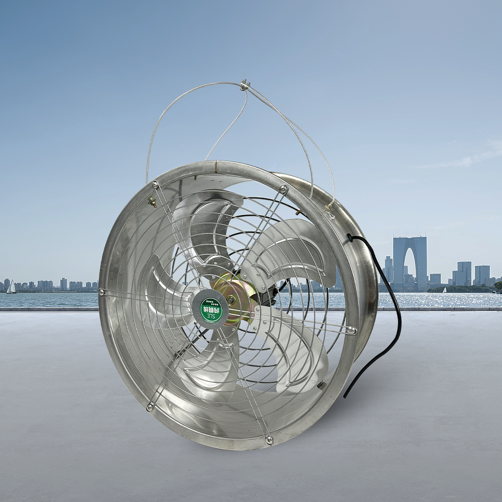 不锈钢环流风机是一款专为高湿度环境设计的耐用型通风设备,其核心优势在于全不锈钢外壳具备卓越的防锈耐腐蚀性能,能够长期稳定运行于温室大棚、畜禽养殖场等潮湿环境。风机配备轻量化铝合金扇叶,经精密动平衡处理,确保运转平稳低噪音;采用铝壳铜芯电机,兼具良好散热性与高效能表现,有效降低能耗。产品提供300mm、400mm、500mm、600mm四种规格,可满足不同空间大小的通风需求。创新设计的吊绳与支架两种安装方式,使安装调整更为灵活便捷:吊装适合屋顶桁架结构,支架安装则可适应墙体、立柱等多种场景。该风机通过形成立体空气循环,能有效消除环境死角,均衡温湿度,促进动植物健康生长,是现代农业设施环境控制的理想解决方案。